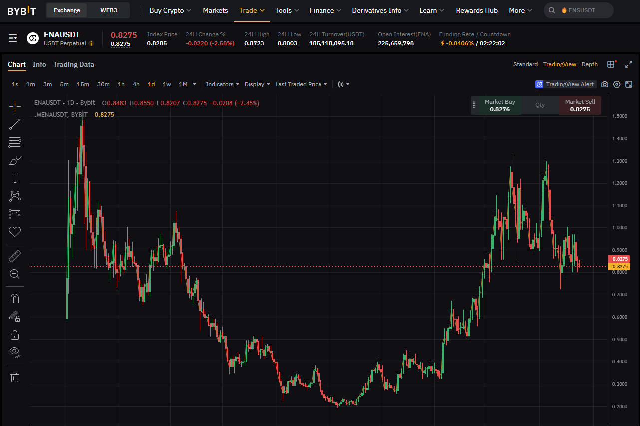 현재 제가 자주 거래하는 BYBIT 거래소의 에테나 차트를 가져왔습니다.